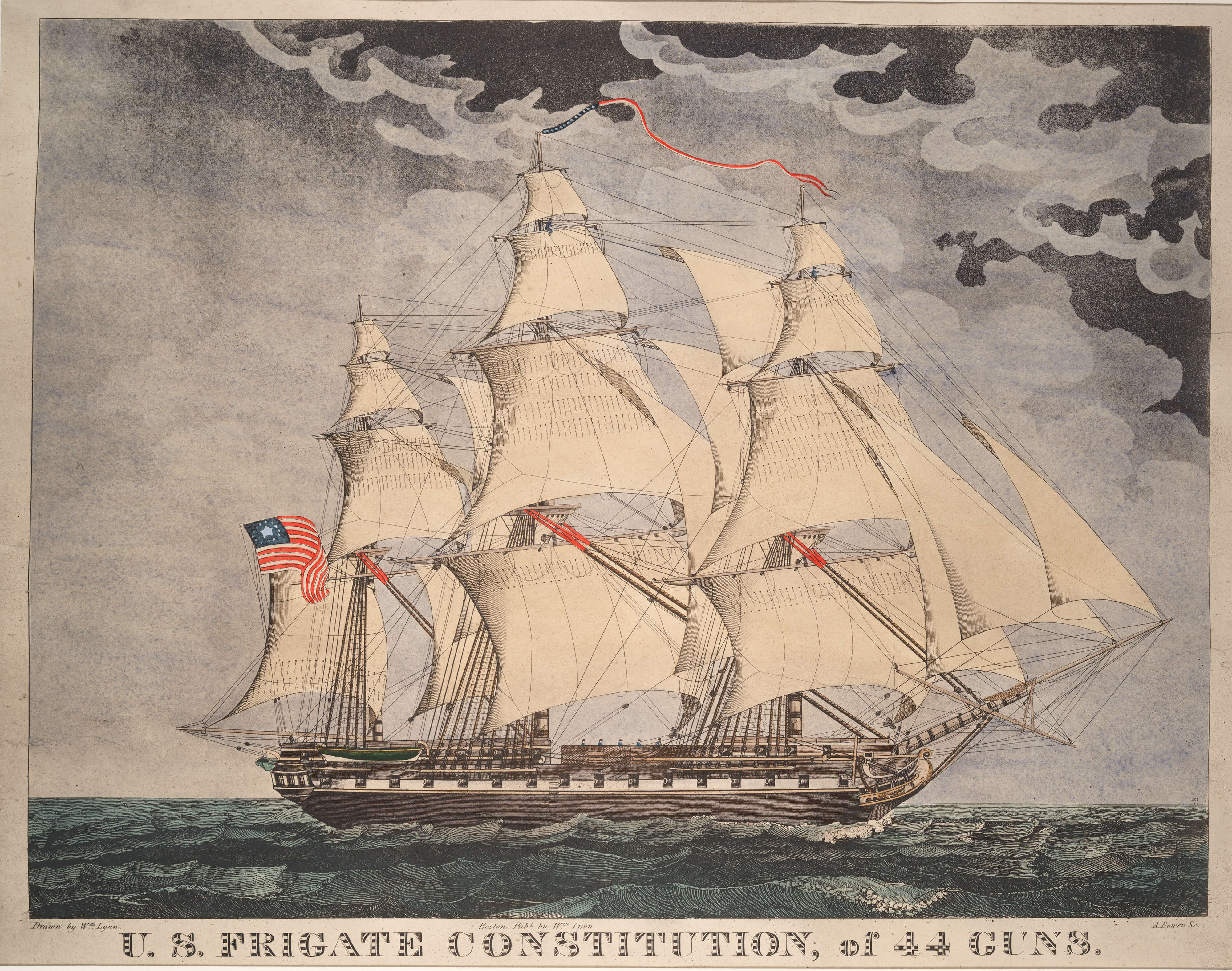 “U.S. FRIGATE CONSTITUTION, of 44 GUNS,” by Abel Bowen, 1815. [USS Constitution Museum Collection.]