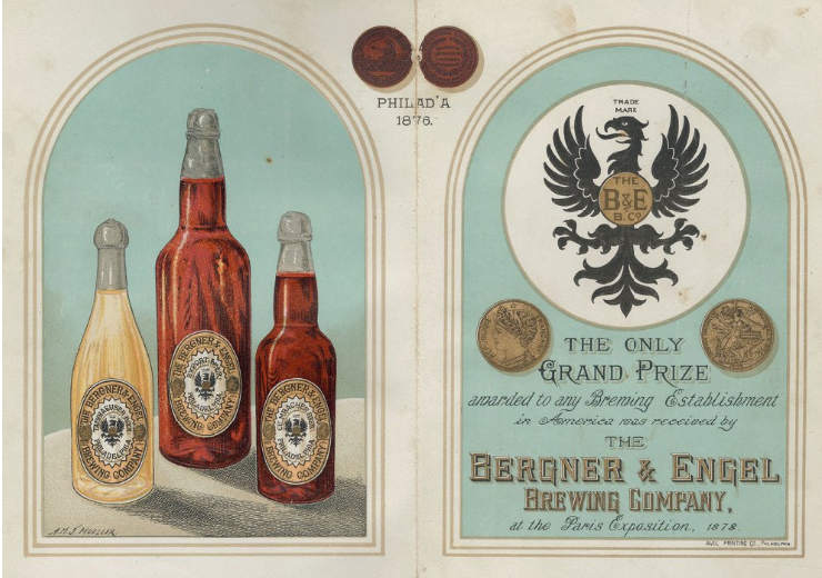 1890 lithographic illustration for Bergner & Engel Brewing Company emphasizing their status as an 1878 Paris Exposition grand-prize winner. [Accessed via the Library Company of Philadelphia. Accession number: 67310.D.pl23.24]