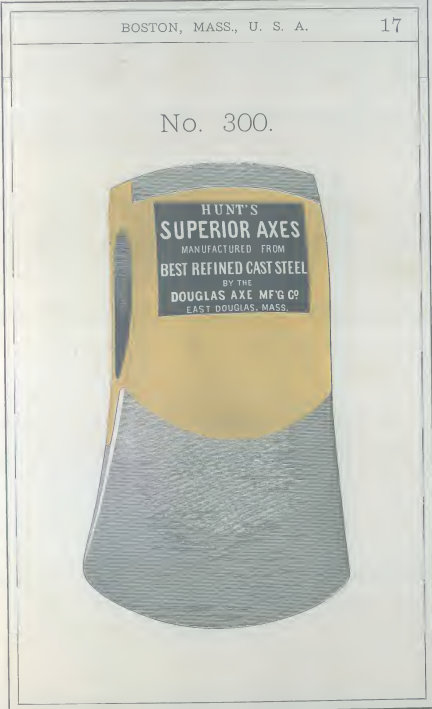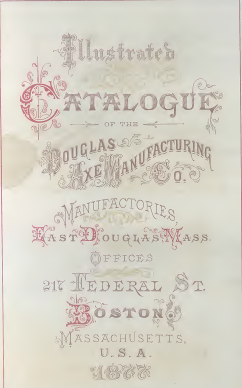 1877 catalog for Douglas Axe Manufacturing with a colored sketch of one of their axes. [Accessed via Internet Archive through Hagely Museum and Library.]